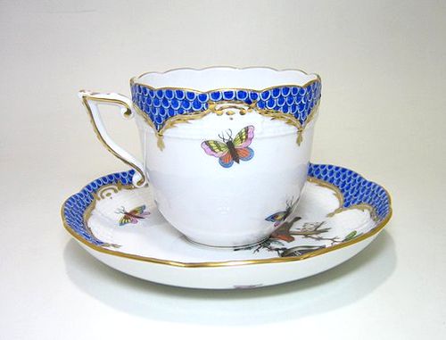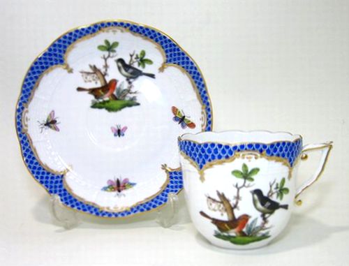 海を渡る 英国ロイヤルウースター社にて 創窯の18世紀半ば スケールブルー(染付の鱗文)によるシノワズリが流行しました。これは 大きな白抜きの地模様で ヘレンドの小紋と違い 発想や 表現の違いから 同根ではありません。本来 鱗文は 三角文として 古くから各民族に共通して創造、再生、繁殖などの 呪模様として存在していました。